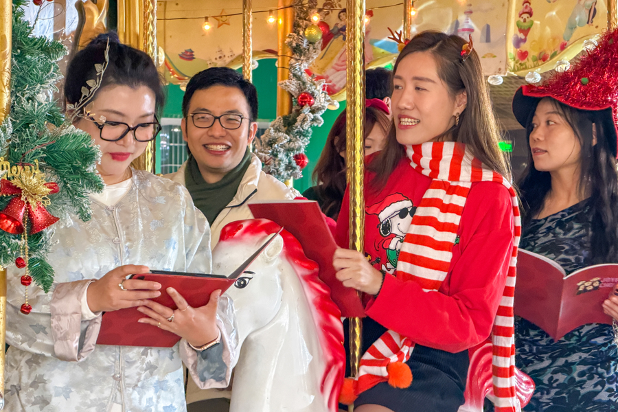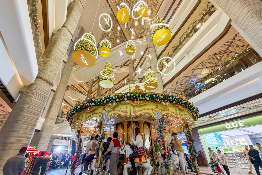 为营造浓厚的节日氛围,千树打造全方位的双旦主题布景。梦幻的“旋转木马”、标志性的“悬浮星光森林”、温馨的“圣诞之家”、缀满花环的“麋鹿花亭”等艺术装置遍布公共空间,结合每日特定时段上演的“人工降雪”及“魔法烟雾泡泡”秀,共同构建一个梦幻的冬日奇境,为市民提供众多极具氛围感的网红打卡点。